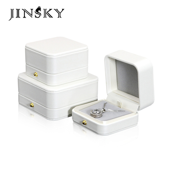 Scatole per Gioielli Jinsky all'Ingrosso, Forma Quadrata in Pelle PU di Lusso, Personalizzabili per Anelli, Orecchini e Bracciali, Confezioni Bianche per Gioielli
