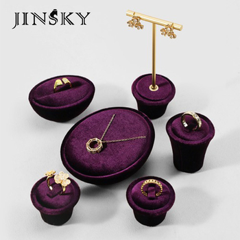 Jinsky Set di espositori di gioielli in velluto di lusso forma ovale collana Stand anello unico orecchino
