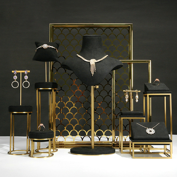 Set di espositori di gioielli di lusso grigio Jinsky con Display in metallo dorato con sfondo di gioielli con anello con ciondolo collana busto